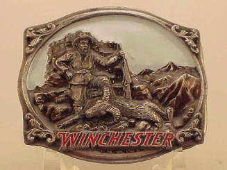 ![]() Winchester Belt Buckle 20a) Winchester belt buckle with Hunter and Ram. A licensed item but no date on piece. Very attractive buckle and in like new condition.